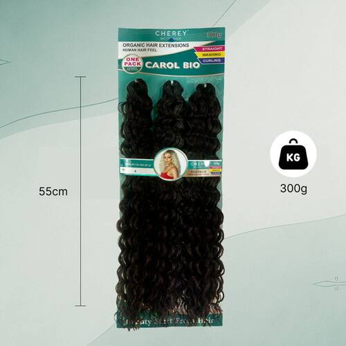Fibra Carol Bio Orgânica 55 cm – 300gNaturalidade, conforto e versatilidade no método Crochet BraidA Fibra Carol Bio Orgânica é perfeita para quem busca um visual sofisticado com aparência natural. Desenvolvida especialmente para o método Crochet Braid, oferece leveza, volume equilibrado e excelente acabamento.Com 55 cm de comprimento e 300 gramas, proporciona um caimento bonito, ideal para quem valoriza estilo com praticidade. Sua textura se aproxima dos fios naturais, garantindo um visual mais autêntico.Aceita temperatura moderada (até 180?°C) com o uso de protetor térmico, além de permitir corte e modelagem, o que facilita a personalização do penteado.Principais características:Método: Crochet BraidComprimento: 55 cmPeso total: 300 gramasTextura com aparência naturalLeve, confortável e ideal para uso diárioPode ser cortada e modeladaSuporta ferramentas térmicas até 180?°C (com proteção térmica)Cuidados recomendados:Lavar com água fria e shampoo neutroHidratar com creme sem enxágue leveSecar naturalmenteEvitar escovas e pentes finosA Fibra Carol Bio Orgânica é a escolha certa para quem deseja um look moderno, com qualidade e liberdade para criar.