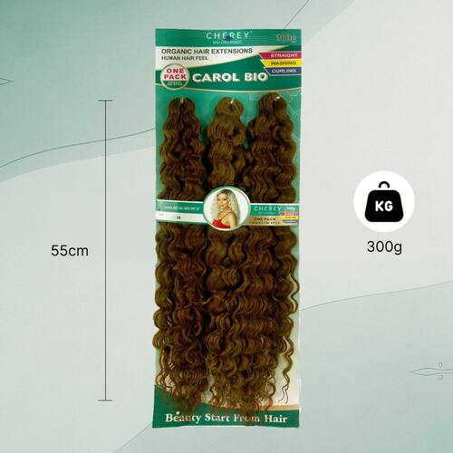 Fibra Carol Bio Orgânica 55 cm – 300gNaturalidade, conforto e versatilidade no método Crochet BraidA Fibra Carol Bio Orgânica é perfeita para quem busca um visual sofisticado com aparência natural. Desenvolvida especialmente para o método Crochet Braid, oferece leveza, volume equilibrado e excelente acabamento.Com 55 cm de comprimento e 300 gramas, proporciona um caimento bonito, ideal para quem valoriza estilo com praticidade. Sua textura se aproxima dos fios naturais, garantindo um visual mais autêntico.Aceita temperatura moderada (até 180?°C) com o uso de protetor térmico, além de permitir corte e modelagem, o que facilita a personalização do penteado.Principais características:Método: Crochet BraidComprimento: 55 cmPeso total: 300 gramasTextura com aparência naturalLeve, confortável e ideal para uso diárioPode ser cortada e modeladaSuporta ferramentas térmicas até 180?°C (com proteção térmica)Cuidados recomendados:Lavar com água fria e shampoo neutroHidratar com creme sem enxágue leveSecar naturalmenteEvitar escovas e pentes finosA Fibra Carol Bio Orgânica é a escolha certa para quem deseja um look moderno, com qualidade e liberdade para criar.