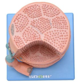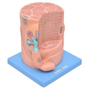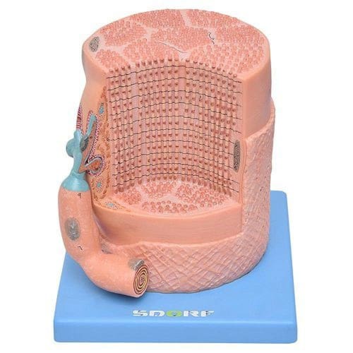 Este modelo é confeccionado em PVC com ampliação de aproximadamente 10.000 vezes; Apresentando alta fidelidade anatômica; Mostra um trecho da fibra muscular de um músculo estriado esquelético; O modelo SD-5029 apresenta os elementos estruturais:
