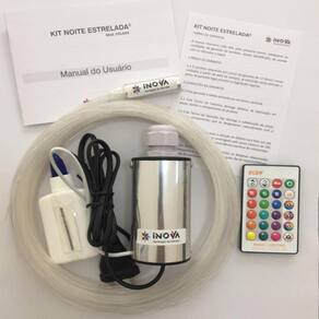 O Kit De Iluminação Noite Estrelada Fibra Ótica conta com 250 pontos e efeito estrelado. Muito utilizado na arquitetura e paisagismo como iluminação decorativa, deve ser aplicado em forros e painéis de gesso, madeira ou qualquer outra superfície de fácil furação. Ótima ideia para decorar o quarto infantil, do casal, salas de banho, home theater, spa, entre outros. O conjunto Noite Estrelada conta com fonte de luz Led com filtro interno para melhor contraste, resultando em uma perfeita nitidez da cor. Equipamento totalmente confeccionado em alumínio e tomada de alimentação com plug ac proporcionando uma melhor segurança e proteção de sua instalação. Possui encaixe perfeito para receber o conjunto de fibras óticas e funcionamento Bivolt. Características: - 250 pontos de luz, sendo : 60 cabos de 1m / 190 cabos de 2m - Equipamento iluminador profissional no kit - Fibras óticas super flexíveis e perfeita definição de pontos luz - Broca produzida em aço rápido permite fácil perfuração - Produto da maior empresa especialista em noite estrelada do Brasil Especificações técnicas Marca: noite estrelada / inovva iluminação interiores Quantidade: 250 pontos de luz Iluminador led Voltagem: bivolt Cor rgb + branco - novo chip cree led Área indicada: 5 a 6 m Controle remoto com as seguintes funções: liga, desliga, aumenta e diminui o tom de luminosidade, trocas automáticas de cores e última função fica na memória sempre ao deligar. Itens inclusos 01 equipamento iluminador profissional compacto em alumínio, 250 pontos estrelas , 60 cabos de 1m / 190 cabos de 2m 01 broca de 0.8 mm, 01 tubo de cola, 01 manual de instalação completo, 01 certificado de do fabricante, 01 controle remoto : 1 ano no equipamento e 10 anos no cabeamento Instalação - Infra Estrutura Necessária Para a instalação é necessário um ponto de energia rebaixo gesso/madeira/pvc e um vão livre de pelo menos 12cm, por trás da superfície que deve estar com pintura/acabamento final pronto. Sobre a Inovva Interiores A Inovva é especializada em iluminação com fibra ótica e led. Com a missão de disponibilizar aos clientes o que há de melhor e mais moderno no segmento, a Inovva está sempre aprimorando seus produtos para tornar a tecnologia acessível a todos. Os kits para efeito e simulação estrelado são confeccionados com as melhores matérias-primas do mercado. Para ver toda a linha de produtos com a qualidade Inovva, na busca do site Noite estrelada Fibra Otica