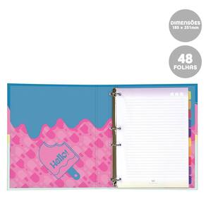 Os Fichários da DAC são referência no mercado e não só para quem é estudante. Ideal para estimular a organização dos estudos diários e alcançar as metas e objetivos sem perder a motivação. Cheio de versatilidade ao inserir ou retirar folhas, pois as argolas articuladas abrem, possibilitando esta ação. Além de estiloso é perfeito para abrir ainda mais as opções de uso e ir além da utilidade na escola ou faculdade. Formato: Colegial 18,5 cm x 25,1 cm x 4 cm Formato Miolo: 15,5 x 22,5 cm Detalhes: Com 48 Folhas decoradas, 10 divisórias e fechamento em elástico Código: 4066 Ean: 7897237378186