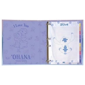 O fichário do nosso pequeno e amado Stitch é estiloso demais. Ele é o item perfeito para alegrar as atividades, ideal para estimular a organização dos estudos diários e alcançar as metas e objetivos sem perder a motivação. Cheio de versatilidade ao inserir ou retirar folhas, pois as argolas articuladas abrem, possibilitando esta ação. Útil e estiloso, foi feito para arrasar! Pronto para escola ou faculdade.