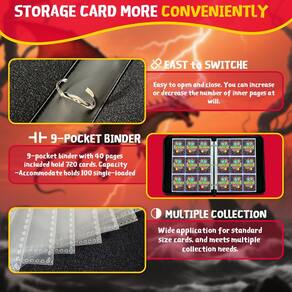 - 🔥 [Grande capacidade de exibição total para armazenamento de espaço até 400 cartões] Nosso livro de cartas colecionáveis de 4 bolsos com 50 páginas de plástico transparente (uso de dois lados), comporta até 400 cartões, oferecendo muito espaço para manter seus valiosos cartões de brinquedos organizados e em ótimas condições. É recarregável/expansível, o design de 3 anéis é conveniente para você adicionar ou remover mangas à vontade, atendendo a todas as suas necessidades de coleção.