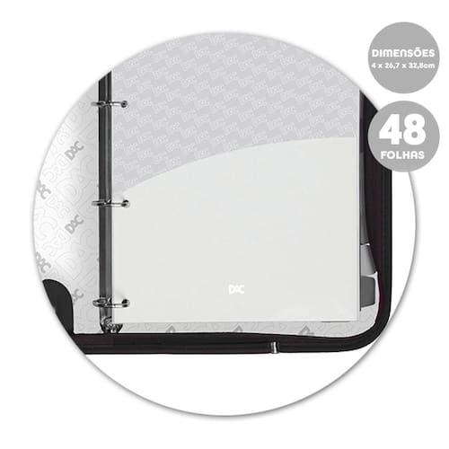 Fichário universitário all black/preto 267x328mm 48fls dac o fichário dac all black é o item perfeito para suas as atividades, ideal para estimular a organização dos estudos diários e alcançar as metas e objetivos sem perder a motivação. Cheio de versatilidade ao inserir ou retirar folhas, pois as argolas articuladas abrem, possibilitando esta ação. Útil e estiloso, foi feito para arrasar pronto para escola ou faculdade. Características: - 48 folhas papel off-set 56g/m; - 10 divisórias; - com 4 argolas fixas; - formato: universitário - 26,7 cm x 32,8 cm x 4 cm; - tamanho do miolo: 200 x 275mm; - composição: externo - pvc e interno - papel off-set c/impressão; - medidas: 255 x 330mm; - referência: 4140; -imagens meramente ilustrativas- atenção: a cor do produto pode variar de acordo com o monitor. Atenção: o fabricante pode alterar a cor de alguma parte do produto sem aviso prévio.