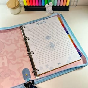 Fichário lindo com zíper com o tema do queridinho Stitch, já vem pronto para usar. Super versátil pois permite remover e acrescentar as folhas sem causar dano a elas ou a estrutura do caderno argolado. É uma excelente ferramenta para organização de conteúdos e informações.