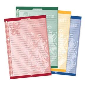 Com ferragem fixa e 4 argolas, o fichário inclui 10 divisórias lisas, 48 folhas decoradas de gramatura 56ge 01 alça, oferecendo a combinação perfeita entre organização e elegância.