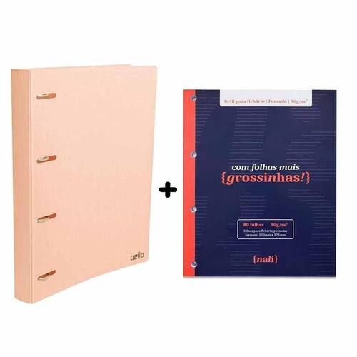 Fichario Universitario Tons Pasteis Papaya com Refil Nali Kit Fichário universitário -Acompanha Refil A4 pautado Nali com folhas mais grossinhas e 1 fichário universitário Dello