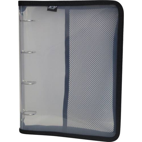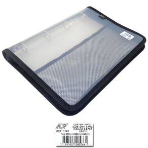 Fichário universitário PP azul com zíper pvc 4 argolas com bolso e zíper.