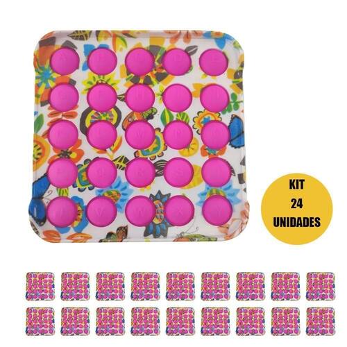 24 Pop It Fidget Colorido com bolhas rosas em formato Quadrado.
