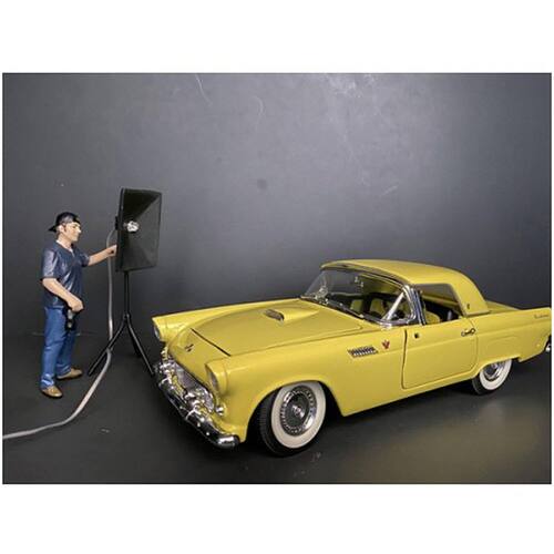 Esta Figura American Diorama Weekend Car Show V é um acessório meticulosamente elaborado, projetado especificamente para carros em miniatura na escala 1/24. Apresenta uma figura realista de um fotógrafo vestido casualmente, segurando uma câmera e ajustando uma luz de estúdio, capturando perfeitamente a atmosfera de um evento de exposição de carros de fim de semana. Este conjunto de figuras adiciona realismo dinâmico e narrativa às suas exibições de carros ou montagens de dioramas.