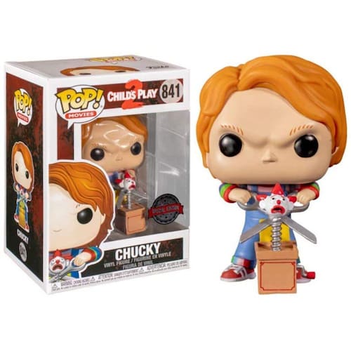 Ambientado dois anos após o primeiro filme; Child's Play 2 segue Charles Lee Ray (mais conhecido como Chucky) continuando sua busca por Andy Barclay, que foi colocado em um orfanato, e transferindo sua alma para ele depois de ser ressuscitado O que temos aqui é um tributo ao pôster do filme, que apresentava o malvado Chucky prestes a cortar o pescoço de um pobre e inocente Jack-in-the-Box. Esse pai! mostra esse visual icônico, tornando este possivelmente o mais imperdível Child's Play Pop! Figura de vinil até hoje