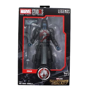 Marvel Studios: Os Primeiros Dez Anos Guardiões da Galáxia Ronan - Design inspirado no filme de sucesso de 2014 da Marvel Studios, Guardiões da Galáxia - Articulação e detalhes premium - #6 na coleção Marvel Studios: Os Primeiros Dez Anos da série Hasbro Marvel Legends - Inspirado no leal aos Kree e parceiro de Thanos - Inclui: boneco e acessório. A partir de 4 anos.