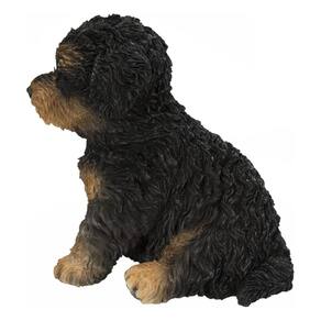 Hi-Line Gift Cachorro Cavapoo Negro y Canela - Material: Poliresina Duradera - Tema: Animales - Uso para interiores y exteriores - Increíblemente realista - Ideal para decoración de hogar y jardín