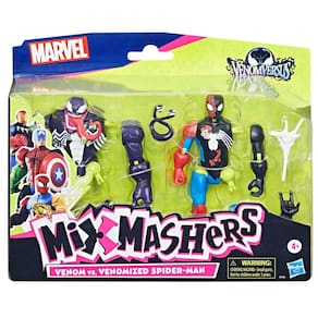 Spider-Man Marvel MixMashers Venom contra Venomizado, Juego de Figura de Acción Personalizada y Accesorios 2-Pack, Juguetes de Súper Héroes a Escala de 5 Pulgadas, Regalos Ideales para Navidad para Niños a partir de 4 Años - DISEÑADO PARA MEZCLAR: Los niños deciden con las figuras de acción de Marvel que pueden desmontar, mezclar y combinar de manera divertida y personalizada - MILLONES DE COMBINACIONES: Con millones de formas creativas de mezclar las piezas intercambiables, estos juguetes de Marvel fomentan horas de juego imaginativo creando figuras únicas - INCLUYE 2 CUERPOS Y 7 PIEZAS: Este set de figuras de acción Marvel trae un cuerpo morado de Venom personalizado, un cuerpo de Spider-Man Venomizado y 7 piezas, incluyendo cabezas de simbionte elásticas, mano alternativa y accesorios de telaraña - CONOCE A LOS PERSONAJES: Los juguetes MixMashers de Marvel presentan sólo los héroes y villanos más icónicos, como Iron Man, Hulk, Thanos, Spider-Man, Miles Morales, Venom, Iron Spider, Black Panther y Capitán América - MÚLTIPLES MEZCLAS: Diseñados para niños, las figuras MixMashers cuentan con conectores universales duraderos para mezclar y combinar una y otra vez - MUY DIVERTIDO: Crea versiones originales y desordenadas de Spider-Man Venomizado y Venom y imagina batallas fuera de este mundo con estos juguetes MixMashers - REGALOS MARVEL GENIALES: Las figuras de acción MixMashers son excelentes regalos para niños y niñas a partir de 4 años (Cada figura se vende por separado. Sujeto a disponibilidad.)