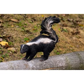 Figura decorativa de mofeta caminante de Hi-Line Gift Ltd., fabricada en poliresina duradera y ligera, perfecta para uso en exteriores gracias a su resistencia a diversas condiciones climáticas. Detallada meticulosamente, es una pieza atractiva y fina para decorar tanto interiores como jardines sin necesidad de ensamblaje. Ideal para entusiastas de la jardinería y compradores de decoración que buscan opciones únicas y realistas con temática animal, así como para regalos originales y peculiares.