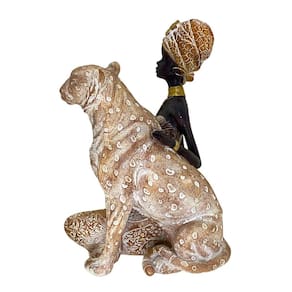 Figura Decorativa Estatueta Africana Com Leopardo 25 X 18 X 17 Cm - 83-954 Figura Decorativa Estatueta Africana Com Leopardo 25 x 18 x 17 Cm