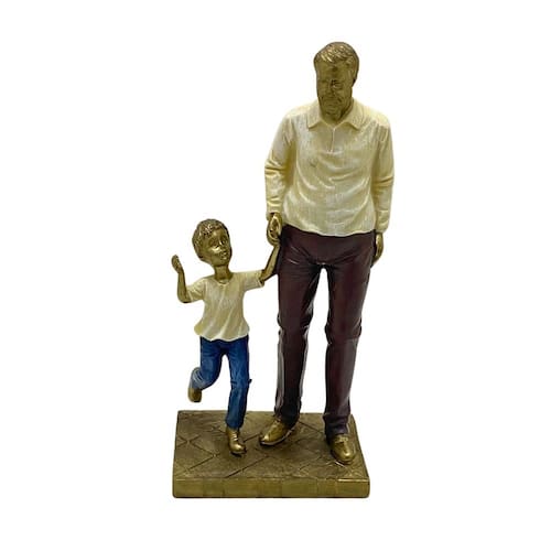 Figura decorativa representando um avô e seu netinho, feita em resina com design clássico e sofisticado perfeito para diversos tipos de ambientes.