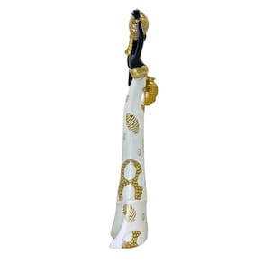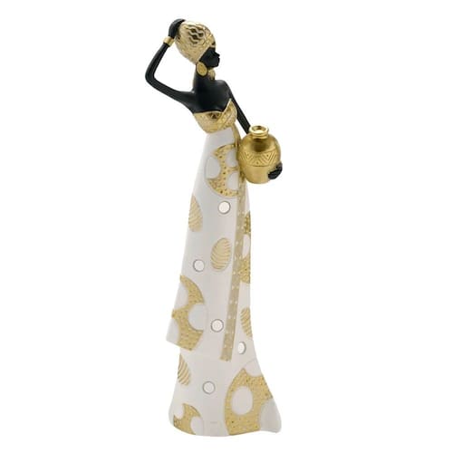 Figura decorativa representando mulher africana, feita em resina com design clássico e sofisticado perfeito para diversos tipos de ambientes.