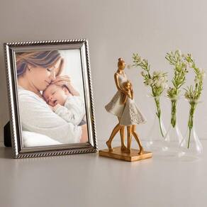 Figura decorativa representando um abraço entre mãe e filha, feita em resina com design clássico e sofisticado perfeito para diversos tipos de ambientes.