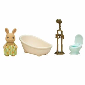 Figura e Conjunto - Sylvanian Families - Banho - Menina Coelho Raio de Sol - Epoch Magia: Sylvanian Families são adoráveis personagens animais distintos com charmosas e bonitas casas, móveis e acessórios. Eles vivem, trabalham e brincam na idílica e maravilhosa terra de Sylvania. Detalhes: • O conjunto Hora do Banho com Menina Coelho Raio de Sol apresenta a Menina Coelho Raio de Sol, Jessica • Outros acessórios inclusos são: banheira, chuveiro e vaso sanitário • Figura articulada: os braços, pernas e cabeças da figura podem ser movimentados para colocá-los em diferentes poses • As roupas de tecido podem ser retiradas para troca de roupas Informações: • Produto: Conjunto Hora do Banho e Figura Menina Coelho Raio de Sol • Marca: Epoch Magia • Coleção: Sylvanian Families • Tipo: Figuras com Acessórios • Categoria: Figuras de Animais e Pets • Conteúdo: - 01 Figura Menina Coelho Raio de Sol - 01 Banheira - 01 Chuveiro - 01 Toalete • Recomendação: para crianças a partir de 03 anos de idade Especificações: • Referência: 5550 • Código de Barras: 5054131055502 • Embalagem (C x A x L): 15 x 17 x 07 cm • Embalagem (Peso): 0.151 kg • Material / Composição: Plástico Injetado e Tecido • Registro: 004530/2019 • Certificado: Órgãos Autorizados - OCP´S (Organismos de Certificação de Produtos) Aviso: • As imagens são meramente ilustrativas • Os pesos, tamanhos e medidas são aproximados • As cores e estampas dos produtos podem ter variações • As informações são de responsabilidade do fabricante ou fornecedor