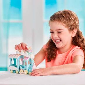 Figura e Veículo - Sylvanian Families - Trem Arco-íris Flutuando na Nuvem - Epoch Magia: Sylvanian Families são adoráveis personagens animais distintos com charmosas e bonitas casas, móveis e acessórios. Eles vivem, trabalham e brincam na idílica e maravilhosa terra de Sylvania. Detalhes: • O Trem Arco-Íris Flutuando na Nuvem conta com um lindo desfile com muitas peças móveis, junto com o bebê Raposa-do-deserto de orelhas longas • Mover o Trem Arco-Íris fará com que a nuvem de fumaça de sua chaminé se mova para cima e para baixo • A nuvem tem espaço o bastante para que três bonecos de bebês se sentem dentro dela • Bonecos de bebê e criança podem ser colocados no banco do motorista e no carro de passeio. • O trem pode ser acoplado a outros veículos e conjuntos de Sylvanian Families • Apresentando a Bebê Raposa-do-deserto, Yulie. Informações: • Produto: Trem Arco-íris Flutuando Na Nuvem • Marca: Epoch Magia • Coleção: Sylvanian Families • Tipo: Figura com Veículo • Categoria: Figuras de Animais e Pets • Conteúdo: - 01 Figura - 01 Veículo • Recomendação: para crianças a partir de 03 anos de idade Especificações: • Referência: 5702P • Código de Barras: 5054131057025 • Embalagem (C x A x L): 28 x 19 x 08 cm • Embalagem (Peso): 0.339 kg • Material / Composição: Plástico Injetado e Tecido • Registro: 004975/2019 • Certificado: Órgãos Autorizados - OCP´S (Organismos de Certificação de Produtos) Aviso: • As imagens são meramente ilustrativas • Os pesos, tamanhos e medidas são aproximados • As cores e estampas dos produtos podem ter variações • As informações são de responsabilidade do fabricante ou fornecedor