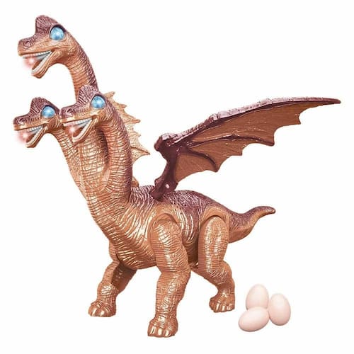 FIGURA ELETRÔNICA - DINOSSAURO - 3 CABEÇAS - MARROM - DM TOYS: As crianças são estimuladas a viver uma brincadeira pré-histórica de dinossauros com essa figura eletrônica com movimentos. Esse incrível Dinossauro com 3 cabeças anda, mexe a cauda e o pescoço, põe três ovinhos, acende luz e emite som. O dino ainda põe 3 ovinhos.Tudo para deixar a brincadeira mais realista INFORMAÇÕES: - Produto: Dinossauro 3 Cabeças - Marca: DM Toys - Tipo: Figura com Movimentos - Medidas aproximadas: 28,5 cm altura - Conteúdo: 01 Dinossauro 3 Cabeças a pilha e 3 ovos - Características: Com luz e som. Mexe o pescoço. Põe 3 ovinhos - Recomendação: para crianças a partir de 3 anos de idade ESPECIFICAÇÕES: - Referência: DMT5848 - Bateria: Utiliza 03 pilhas "AA" não incluídas - Material: Composição: Plásticos PP e PS - Certificado: CE-BRI/OCP0019 N020/16 BR-020/16 NBR NM 300/2002 ALGUNS BENEFÍCIOS DE BRINCAR: 1 - Eleva a autoestima 2 - Estimula o raciocínio 3 - Exercita o imaginário 4 - Desenvolve a criatividade 5 - Promove a socialização e interação 6 - Desenvolvimento neuropsicológico 7 - Estimula habilidades motoras básicas 8 - Incentiva a comunicação e linguagem 9 - Desenvolve aspectos emocionais e afetivos AVISO: - Foto: Imagens meramente ilustrativas. - Imagem: cores e estampas dos produtos podem ter variações. - Observação: Informações são de responsabilidade do fabricante ou fornecedor. ATENÇÃO: Comprar Figura Eletrônica - Dinossauro - 3 Cabeças - Marrom - DM Toys ficou fácil. Aproveite nossas condições de pagamento. Oferta válida por tempo limitado. Entrega para todo o Brasil!
