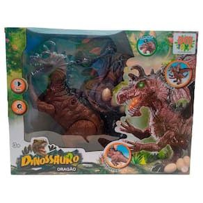 Figura Eletrônica - Dinossauro Dragão - Ovos - Luz e Som - DM Toys: será que você é capaz de domar esse predador terrível? Com o Dinossauro Dragão da DM Toys, as suas brincadeiras irão ficar incríveis e divertidas! Ele tem movimentos realistas e um andar assustador, como um dinossauro de verdade. Está fera veio acompanhada com habilidades mais predadoras ainda! Com luzes brilhantes e rugidos fortes contra os inimigos além de 3 ovos que o dragão irá botar. Possui asas desmontáveis para praticidade em transportes. É melhor se preparar para brincar com o seu Dinossauro Dragão assustador da DM Toys! Informações: • Produto: Dragão eletrônico • Marca: DM Toys • Coleção: Dinossauro Dragão • Tipo: Figura Eletrônica com controle remoto • Categoria: Figuras de Animais e Pets • Conteúdo: - 01 Dinossauro a pilha - 03 ovinhos • Recomendação: para crianças a partir de 03 anos de idade Especificações: • Referência: DMT6423 • Código de Barras: 7899205964230 • Embalagem (C x A x L): 39 x 30 x 12 cm • Embalagem (Peso): 0.750 Kg • Material / Composição: Plástico ABS e PP. • Funcionamento: - Figura: 3 pilhas “AA” (1.5 V) (não incluídas) • Registro: 004 248/2022 • Certificado: Órgãos Autorizados - OCP´S (Organismos de Certificação de Produtos) Aviso: • As imagens são meramente ilustrativas • Os pesos, tamanhos e medidas são aproximados • As cores e estampas dos produtos podem ter variações • As informações são de responsabilidade do fabricante ou fornecedor