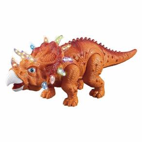FIGURA ELETRÔNICA - DINOSSAURO - TRICERÁTOPO - LARANJA - DM TOYS: As crianças são estimuladas a viver uma brincadeira pré-histórica de dinossauros com essa figura eletrônica com movimentos Tricerátopo. Essa incrível fera anda, mexe a cabeça e a cauda. O Tricerátopo possui luz e emite som para deixar a brincadeira mais divertida! INFORMAÇÕES: - Produto: Dinossauro Tricerátopo - Marca: DM Toys - Tipo: Figura com Movimentos - Medidas aproximadas: 35 cm - Conteúdo: 01 Tricerátopo a pilha - Características: Com luz e som Anda, mexe a cauda e balança a cabeça - Recomendação: para crianças a partir de 3 anos de idade ESPECIFICAÇÕES: - Referência: DMT4724 - Bateria: Utiliza 03 pilhas "AA" não incluídas - Material: Composição: Plásticos PP e PS - Certificado: CE-BRI/OCP0019 N020/16 BR-020/16 NBR NM 300/2002 ALGUNS BENEFÍCIOS DE BRINCAR: 1 - Eleva a autoestima 2 - Estimula o raciocínio 3 - Exercita o imaginário 4 - Desenvolve a criatividade 5 - Promove a socialização e interação 6 - Desenvolvimento neuropsicológico 7 - Estimula habilidades motoras básicas 8 - Incentiva a comunicação e linguagem 9 - Desenvolve aspectos emocionais e afetivos AVISO: - Foto: Imagens meramente ilustrativas. - Imagem: cores e estampas dos produtos podem ter variações. - Observação: Informações são de responsabilidade do fabricante ou fornecedor. ATENÇÃO: Comprar Figura Eletrônica - Dinossauro - Tricerátopo - Laranja - DM Toys ficou fácil. Aproveite nossas condições de pagamento. Oferta válida por tempo limitado. Entrega para todo o Brasil!