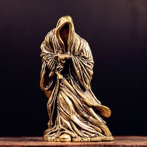 Material: cobre Tamanho: cm Peso: g Design detalhado do Grim Reaper — Apresenta uma figura com capuz e sem rosto em vestes esvoaçantes, segurando uma espada, evocando mistério e poder para espaços com temas góticos ou de fantasia. Material de cobre sólido premium — Feito de cobre de qualidade com acabamento em bronze retrô, oferecendo durabilidade, peso e uma estética antiga. Ornamento gótico compacto — ideal para desktops, prateleiras ou configurações de jogos, aprimorando a decoração com um toque artístico sombrio em pequena escala. Estética de fantasia medieval — linhas escultóricas e movimentos dramáticos de capa criam uma obra de arte dinâmica adequada para colecionadores ou amantes da fantasia. Figura artística acabada à mão — Uma estátua em miniatura bem equilibrada, perfeita para amantes de DnD, fãs de terror ou como sotaque temático em ambientes selecionados.