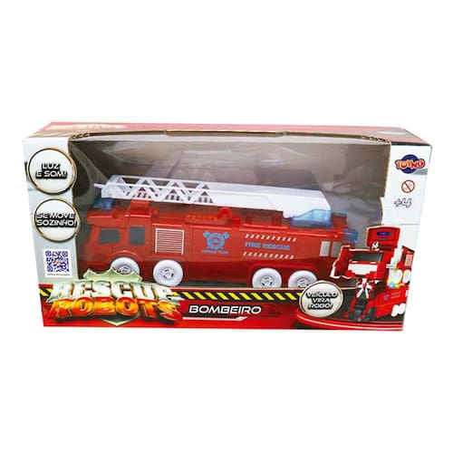Figura Interativa - 2 em 1 - Rescue Robots - Bombeiro - Toyng: brinquedo 2 em 1 que proporciona uma experiência divertida e inovadora. O ciborgue Bombeiro pode ser transformado em um robô em questão de segundos. São duas maneiras de brincar: na versão caminhão de bombeiro ou na versão ciborgue. Assim a diversão não tem fim. Informações: • Produto: Rescue Robots Bombeiro • Marca: Toyng • Cor: Vermelho • Coleção: Rescue Robots • Tipo: Figura Eletrônica 2 em 1 • Categoria: Figuras Eletrônicas • Conteúdo: 01 Caminhão Bombeiro vira Robô • Recomendação: para crianças a partir de 04 anos de idade Especificações: • Referência: 47266 • Código de Barras: 7899871617973 • Embalagem (C x A x L): 33 x 16 x 09 cm • Embalagem (Peso): 0.455 g • Material / Composição: Acrilonitrila Butadieno Estireno, Poliestireno, Polipropileno, Borracha Termoplástica, Poliacetal Copolímero e Liga Metálica • Alimentação: 03 Pilhas AA (Não inclusas) • Registro: 004642/2022 • Certificado: Órgãos Autorizados - OCP´S (Organismos de Certificação de Produtos) Benefícios de brincar: • Eleva a autoestima • Exercita a memória • Estimula o raciocínio • Exercita o imaginário • Desenvolve a criatividade • Desenvolve percepção visual • Desperta a atenção e curiosidade • Desenvolvimento neuropsicológico • Estimula habilidades motoras básicas • Incentiva a comunicação e linguagem • Desenvolve aspectos emocionais e afetivo • Estimula o reconhecimento de formas e cores Aviso: • As imagens são meramente ilustrativas • Os tamanhos e medidas são aproximados • As cores e estampas dos produtos podem ter variações • As informações são de responsabilidade do fabricante ou fornecedor