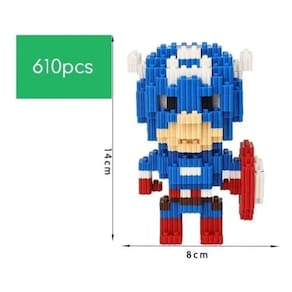 Blocos nano muito divertidos, , para você se desafiar completando esta figura. Seu próprio universo interativo Inclui a minifigura do Capitão América para complementar suas criações e dar vida a cada uma de suas histórias. Sua criatividade não terá limites, esteja pronto para enfrentar desafios incríveis. Use sob supervisão Recomenda-se usar a partir dos 6 anos de idade. Superne meninos e meninas para evitar acidentes. Peças pequenas