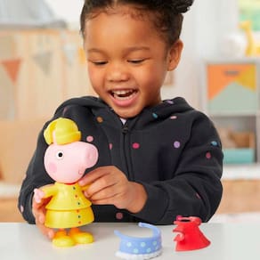 Divirta-se com a Peppa Pig em brincadeiras cheias de estilo! Chova ou neve, a boneca Porquinha Peppa da coleção Peppa Pig Estilos Divertidos está pronta para brincar! As crianças podem vestir a figura fashion Porquinha Peppa de 15 cm com os 6 acessórios inclusos.