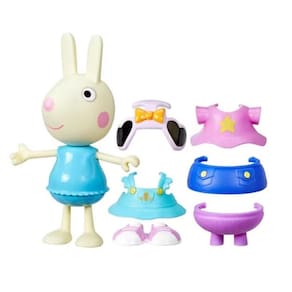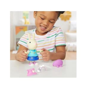 Dia ou noite, a figura Rebecca Rabbit Dress-Up está pronta para brincar! As crianças podem vestir a boneca Rebecca Rabbit de 15 cm usando os acessórios para dias imaginários agitados e noites aconchegantes. Vista Rebecca com um look completo ou seja criativo, misture e combine as peças para fazer looks malucos! Adicione ainda mais opções de combinação à brincadeira de vestir com mais bonecos baseados nos amigos favoritos da Peppa Pig (cada um vendido separadamente).