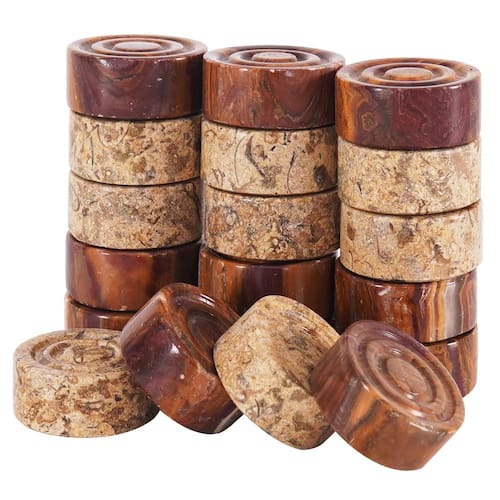 Beleza feita à mão trazida à vida. Sinta o estilo real, um enigma imperial, este conjunto de bonecos xadrez traz à tona a delicadeza do luxo e da opulência que não podem ser ignoradas. Traga para casa um conjunto de bonecos de damas incrivelmente bonitos e tem poder para cativar os espectadores. Apenas figuras de verificação, sem quadro de verificadores – com o jogo completo. O diâmetro das peças de xadrez mede 3,15 cm. Total de 32 peças, apenas 16 cores vermelhas e 16 cores coral. Vem em uma embalagem segura e frágil. - Conteúdo da embalagem: 32 peças de damas, 16 vermelhas e 16 corais. Vem com embalagem segura e frágil da marca RADICALn. - Material: é feito com mármore natural de alta qualidade. - Tamanho – Altura: - 1,25 polegadas e largura: - 3,5 cm. - Peças de jogo clássicas – perfeitas para jogar damas, estas figuras são essenciais para desfrutar do jogo atemporal com a família e amigos. - Acabamento suave – cada peça é trabalhada com uma superfície polida para facilitar o deslizamento e manuseio confortável durante o jogo. - Design de dois tons – Inclui 32 peças (16 de cada cor — normalmente vermelho e coral ou outras cores contrastantes) para facilitar a identificação durante o jogo.