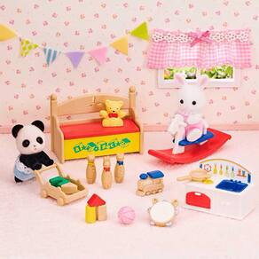 Figuras - Sylvanian Families - Caixa de Brinquedos - Epoch Magia: Sylvanian Families são adoráveis personagens animais distintos com charmosas e bonitas casas, móveis e acessórios. Eles vivem, trabalham e brincam na idílica e maravilhosa terra de Sylvania. Detalhes: • Caixa de Brinquedos Divertidos com Bebê Coelho Neve e Bebê Panda é um conjunto colorido que inclui muitos brinquedos para os bebês brincarem, incluindo bonecas e pinos de boliche. • Este conjunto traz uma variedade de brinquedos super fofos para os bebês coelho neve e panda se divertirem na floresta Sylvanian Informações: • Produto: Caixa de Brinquedos do Bebê Coelho Neve e Bebê Panda • Marca: Epoch Magia • Coleção: Sylvanian Families • Tipo: Conjunto de Figuras com Acessórios • Categoria: Figuras de Animais e Pets • Subcategoria: Figuras • Conteúdo: - 01 Bebê Coelho Neve Sophie - 01 Bebê Panda Roy (engatinhando) - Acessórios diversos: bonecas, pinos de boliche, bancada para armazenamento, tijolos e carrinho • Recomendação: para crianças a partir de 03 anos de idade Especificações: • Referência: 5709 • Código de Barras: 5054131057094 • Embalagem (C x A x L): 20 x 15 x 06 cm • Embalagem (Peso): 0.174 kg • Material / Composição: Plástico Injetado e Tecido • Registro: 004975/2019 • Certificado: Órgãos Autorizados - OCP´S (Organismos de Certificação de Produtos) Aviso: • As imagens são meramente ilustrativas • Os pesos, tamanhos e medidas são aproximados • As cores e estampas dos produtos podem ter variações • As informações são de responsabilidade do fabricante ou fornecedor