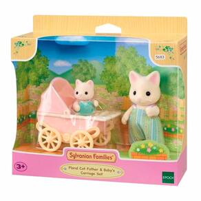 Figuras - Sylvanian Families - Carrinho - Bebê e Papai Gatos Primavera - Epoch Magia: Sylvanian Families são adoráveis personagens animais distintos com charmosas e bonitas casas, móveis e acessórios. Eles vivem, trabalham e brincam na idílica e maravilhosa terra de Sylvania. Detalhes: • O pai e o bebê Gato Floral com uma carruagem estão incluídos neste kit • Divirta-se brincando com o bebê no carrinho • Os braços, pernas e cabeças dos bonecos podem ser movidos e colocados em diferentes posições • Apresentando o pai Gato Floral, Minos e a bebê, Keana Informações: • Produto: Conjunto Carrinho de Bebê Papai e Bebê Gatos Primavera • Marca: Epoch Magia • Coleção: Sylvanian Families • Tipo: Figuras com Acessórios • Categoria: Figuras de Animais e Pets • Conteúdo: - 01 Pai Gato Floral - 01 Bebê Gato Floral - 01 Carrinho de passeio • Recomendação: para crianças a partir de 03 anos de idade Especificações: • Referência: 5683P • Código de Barras: 5054131056837 • Embalagem (C x A x L): 15 x 17 x 07 cm • Embalagem (Peso): 0.152 kg • Material / Composição: Plástico Injetado e Tecido • Registro: 004 975 / 2019 • Certificado: Órgãos Autorizados - OCP´S (Organismos de Certificação de Produtos) Aviso: • As imagens são meramente ilustrativas • Os pesos, tamanhos e medidas são aproximados • As cores e estampas dos produtos podem ter variações • As informações são de responsabilidade do fabricante ou fornecedor