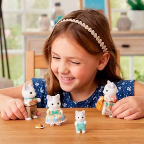 Figuras - Sylvanian Families - Família Gatos de Leite - Epoch Magia: Sylvanian Families são adoráveis personagens animais distintos com charmosas e bonitas casas, móveis e acessórios. Eles vivem, trabalham e brincam na idílica e maravilhosa terra de Sylvania. Detalhes: • A Família dos Gatos de Leite tem cores suaves e manchas arredondadas. Este conjunto vem com pai, mãe, menina, bebê e diversos acessórios • Os acessórios incluem bebidas, um waffle e uma sacola de mercado • A mãe, o pai e a menina estão usando roupas com estampa xadrez em cores diferentes • Os braços, pernas e cabeças dos bonecos podem ser movidos e colocados em diferentes posições • As roupas podem ser tiradas para mudar o look dos bonecos Informações: • Produto: Figuras Família dos Gatos de Leite Sylvanian Families • Marca: Epoch Magia • Coleção: Sylvanian Families • Tipo: Figuras de Personagens • Categoria: Figuras de Animais e Pets • Conteúdo: - 01 Pai gato de leite - 01 Mãe gato de leite - 01 Menina Gato de leite - 01 Bebê Gato de leite - 02 xicaras - 01 Sacola - 01 Waffle - 01 Prato • Recomendação: para crianças a partir de 03 anos de idade Especificações: • Referência: 5738 • Código de Barras: 5054131057384 • Embalagem (C x A x L): 20 x 17 x 5,5 cm • Embalagem (Peso): 0.167 kg • Material / Composição: Plástico Injetado e Tecido • Registro: 004975/2019 • Certificado: Órgãos Autorizados - OCP´S (Organismos de Certificação de Produtos) Aviso: • As imagens são meramente ilustrativas • Os pesos, tamanhos e medidas são aproximados • As cores e estampas dos produtos podem ter variações • As informações são de responsabilidade do fabricante ou fornecedor