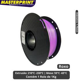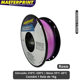 Filamento 3D PLA Roxo 1.75mm 1kg Cor Brilhante Textura Macia Masterprint Filamento 3D