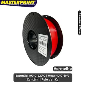 Filamento 3D PLA Vermelho 1.75mm 1kg Cor Brilhante Textura Macia Masterprint Filamento 3D