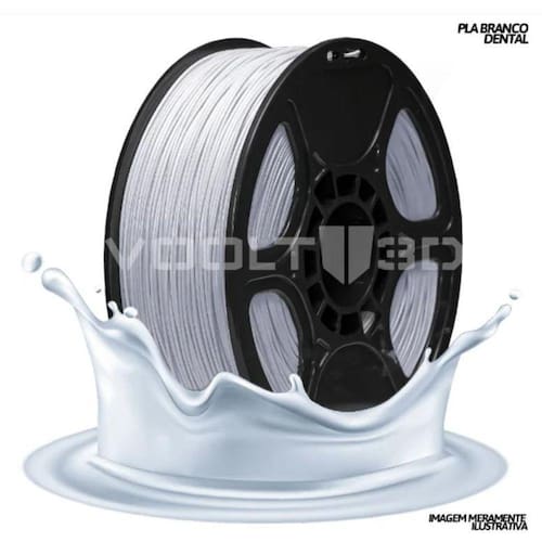 Filamento Impressão 3D Voolt Pla Branco Dental 1Kg Os Filamentos Voolt3D são fabricado 100% no Brasil utilizando alta tecnologia e a melhor matéria prima do mercado, a Ingeo.O polímero do PLA é feito através da fermentação de açúcares derivados de plantas e, por isso, é biodegradável, reciclável e não possui nenhum tipo de resíduo tóxico. Dessa forma, o PLA é uma opção amiga do meio ambiente para muitos segmentos.O PLA tem como principais características: Grande facilidade de impressão, não precisa fechar a impressora para imprimir Excelente aderência entre as camada Boa resistência mecânica para carga estática Peça com baixíssima contração Menor probabilidade de deformação, não sofre empenamento famoso warp Peças brilhantes com cores mais vivas Material com retorno seguro para a natureza sem sinal de resíduos químicos ou tóxicos Não exala odores fortes.Especificações técnicas: Marca: Voolt3D Modelo: PLA Premium 1 kg Matéria prima: Poliácido Láctico Diâmetro do filamento: 1,75 mm 0,05 mm Dimensões do carretel: 20 cm x 6 cm D x A Diâmetro do furo do carretel: 48,6 mm Tamanho da embalagem: 21 cm x 21 cm x 8 cm L x P x A Peso com embalagem: 1,3 kg Temperatura de impressão: 190C - 215C Temperatura da mesa: = 60CA faixa de temperatura da extrusora é diferente para cada tipo de filamento, podendo variar dependendo da cor, temperatura ambiente e da impressora. Recomendamos sempre testar o filamento imprimindo uma torre de temperatura para achar a temperatura adequadaItens Inclusos: Filamentos Premium de 1kg Embalagem a Vácuo Sílica Gel contra umidade Dica: Caso não esteja utilizando o material, mantenha-o embalado com a sílica, em local seco e longe da radiação solar para evitar umidade no filamento. Marca: Voolt3D