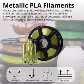 - Prestígio para projetos: dê um toque de prestígio aos projetos estudantis e prêmios com o filamento MakerBot Metallic Color Series Sketch PLA em pátina Bronze