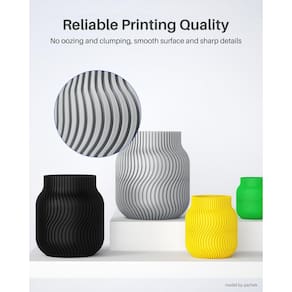Eleve sua experiência de impressão 3D com um filamento PETG PRO e testemunhe ELEGOO diferença que isso faz. Com sua facilidade de impressão, precisão dimensional excepcional e estabilidade, boas propriedades mecânicas e resistência química e climática, explore sua ampla variedade de aplicações e compatibilidade e desbloqueie infinitas possibilidades para seus projetos de impressão 3D. Parâmetros Densidade: 1,27 g/cm³ Índice de derretimento: 8-10 (190C/2,16 kg) g/10 min Resistência à tração: = 37MPa Alongamento na ruptura: 15% Resistência à flexão: 67MPa Módulo de dobra: 1800 MPa Resistência ao impacto entalhada Izod: 5 kj/m² Temperatura de distorção térmica: 66°C (0,45MPa) Temperatura de impressão: 230~260°C (recomendado 240°C) Temperatura da plataforma de impressão: 75-90°C Velocidade de impressão: 40-100 mm/s - Impressões lisas e confiáveis: aborda efetivamente problemas comuns como exsudação e aglomeração associados ao PET regular, garantindo impressões mais suaves e confiáveis com detalhes nítidos - DURABILIDADE MELHORADA: PETG PRO oferece durabilidade e resistência superiores em comparação com PLA, tornando-o ideal para itens de longa duração. Oferece excelente resistência à água, UV e temperaturas, perfeito para aplicações externas como vasos de plantas, gaiolas de pássaros e peças automotivas - Consistente e menos emaranhado: precisão de diâmetro de +/- 0,02 mm, garantindo alimentação suave e consistente. O enrolamento mecânico completo e a inspeção manual rigorosa garantem que todos os filamentos PETG PRO sejam bem enrolados, reduz efetivamente os emaranhados e problemas de encaixe - Sem entupimento e sem bolhas: Seco completo antes de embalar e bem selado a vácuo protege os filamentos da umidade e poeira, sem entupimento e bolhas. Use o mais rápido possível após desembalar, seque completamente antes de usar novamente - IMPRESSÃO SUPERIOR: O filamento de impressora 3D PETG PRO tem maior adaptabilidade para impressoras e configurações de impressão. Você pode facilmente obter resultados de impressão ideais sem ajuste fino. Adequado para a maioria das impressoras FDM de 1,75 mm