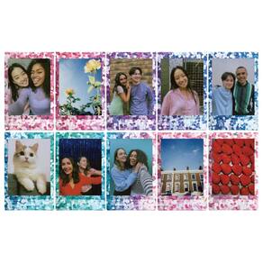 Filme Fujifilm Instax Mini Confetti - 10 exposições - Apresenta um padrão contínuo de confete multicolorido nas bordas do filme - Usa tecnologia de filme real, com reprodução de cores vibrantes por anos e anos - Adequado para todas as câmeras da minissérie Instax, impressoras mini SHARE e Link e impressoras de câmera/smartphone LiPlay e EVO Hybrid - Desenvolve-se instantaneamente - pressione o obturador, capture o momento e veja a foto sair e se desenvolver diante de seus olhos