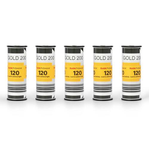 Filme negativo Kodak Professional Gold 200 Color (filme de 120 rolos, pacote com 5) — Filme profissional: apresenta uma combinação ideal de cores quentes saturadas, granulação fina e alta nitidez — Uso interno/externo: projetado para fotógrafos fotografando em qualquer nível para a luz do dia e captura com flash — Ampla latitude de exposição: também apresenta ampla latitude de exposição — de duas paradas de subexposição a três paradas de superexposição — Armazenamento e manuseio: carga e manuseio descarregue sua câmera sob luz suave. Sempre guarde o filme (exposto ou não exposto) em local fresco e seco - Recomendações para câmaras escuras: Não use luz de segurança. Lidar com filme não processado no total
