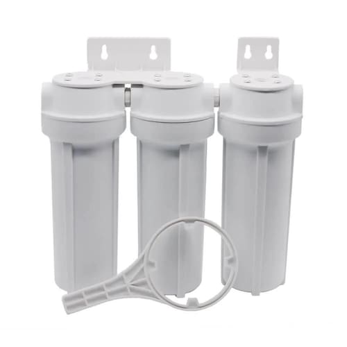 Filtro triplo para água de fabricação de cerveja artesanal. Carcaças com proteção ultravioleta, ideais para instalação em áreas externas. Carcaças de alta resistência e durabilidade. Retém partículas suspensas, eliminando barro, areia, lodo e impurezas. Remove 100% do cloro e clorofenol, evitando sabores e odores desagradáveis. Ideal para pequenas cervejarias, padarias, lancherias e restaurantes. Materiais atóxicos.Bica móvel