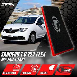 Filtro ar esportivo inflow renault sandero 1.0 2017 a 2022 Características: - desenhado para melhorar a eficiência do veículo; - não descartável lavável e 100% reciclável; - vida útil de 2 anos ou 60.000km; - redução da emissão veicular; - redução na quantidade de trocas de filtro de ar convencional de papel ecologicamente correto ; - espuma poliuretano performance de filtro ar esportivo ; - não sofre com ação de umidade e chuva; - óleo utilizado: óleo mineral vaselina líquida neutra - modelo urbano, podendo ser utilizado em ruas de terra com manutenção antecipada. Na utilização por longos períodos em estradas não pavimentadas, as condições de limpeza do filtro devem ser avaliadas a cada 5 mil km.