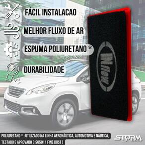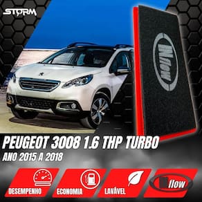 Filtro ar esportivo peugeot 2008 1.6 thp turbo 2015 a 2018 Características: - desenhado para melhorar a eficiência do veículo; - não descartável lavável e 100% reciclável; - vida útil de 2 anos ou 60.000km; - redução da emissão veicular; - redução na quantidade de trocas de filtro de ar convencional de papel ecologicamente correto ; - espuma poliuretano performance de filtro ar esportivo ; - não sofre com ação de umidade e chuva; - óleo utilizado: óleo mineral vaselina líquida neutra - modelo urbano, podendo ser utilizado em ruas de terra com manutenção antecipada. Na utilização por longos períodos em estradas não pavimentadas, as condições de limpeza do filtro devem ser avaliadas a cada 5 mil km.