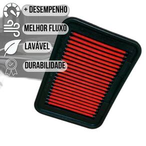 O diferencial deste filtro de ar esportivo é o seu alto fluxo de ar, que permite que o motor admita mais ar para a câmara de combustão. Isso resulta em uma queima de combustível mais eficiente, o que proporciona um aumento de potência, uma melhor eficiência energética e um menor consumo de combustível. Além disso, este filtro de ar possui uma vida útil muito superior, com garantia de 100 mil KM.