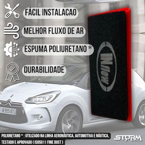 Filtro ar inflow citroen ds3 motor 1.6 thp turbo 2012 a 2015 Características: - desenhado para melhorar a eficiência do veículo; - não descartável lavável e 100% reciclável; - vida útil de 2 anos ou 60.000km; - redução da emissão veicular; - redução na quantidade de trocas de filtro de ar convencional de papel ecologicamente correto ; - espuma poliuretano performance de filtro ar esportivo ; - não sofre com ação de umidade e chuva; - óleo utilizado: óleo mineral vaselina líquida neutra - modelo urbano, podendo ser utilizado em ruas de terra com manutenção antecipada. Na utilização por longos períodos em estradas não pavimentadas, as condições de limpeza do filtro devem ser avaliadas a cada 5 mil km. Compatível com: Citroen ds3 motor thp 1.6 turbo Itens inclusos - 01 filtro de ar esportivo - 01 manual - 01 adesivo decal inflow - 01 adesivo caixa de ar - 01 termo de Sobre o filtro: Melhore a eficiência do seu veículo com os filtros inflow. Feito especialmente de poliuretano, um material filtrante já consagrado em mercados como o europeu, americano e asiático, os filtros inflow aperfeiçoam a entrada de ar no motor, proporcionando uma melhor combustão e consequentemente diminuindo o consumo de combustível. Pelo histórico de todos os testes realizados em outros veículos, os resultados sempre são muito parecidos, ou seja: filtro novo inflow x filtro novo papel = ganho de 2 a 3% em potência. Com o passar do tempo, os demais filtros começam a ficar restritivos, aumentando significativamente essa %, podendo chegar a 10% essa restrição não ocorre com o inflow em função da característica das células, em formato de dodecaedro, que retém a poeira que fica grudada no óleo que é aplicado no filtro, mantendo por um tempo muito maior, o funcionamento do motor em sua plenitude de potência. Quando fazer a manutenção Depende do uso. Examinar o elemento filtrante a cada 5.000 km e periodicamente em condições severas de poeira. Quando em condições de utilização em áreas urbanas, geralmente 01 vez ao ano ou 15.000 km o que chegar primeiro , no mínimo. Principais perguntas: P. Necessita adaptação para instalar P. Acusa algum erro no painel do carro P. Qual a condição do produto R. Vendemos somente produtos novos e lacrados P. Acompanha oleo de manutenção R. Filtro já vem com oleo aplicado, porem não acompanha oleo adiconal para as futuras manutenções oleo adquirido a parte Obs: apesar de simples instalação orientamos que a instalação seja feita por um profissional. Marca: Não Informado