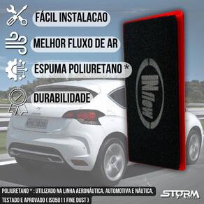 Filtro ar inflow citroen ds4 motor 1.6 thp turbo 2012 a 2016 Características: - desenhado para melhorar a eficiência do veículo; - não descartável lavável e 100% reciclável; - vida útil de 2 anos ou 60.000km; - redução da emissão veicular; - redução na quantidade de trocas de filtro de ar convencional de papel ecologicamente correto ; - espuma poliuretano performance de filtro ar esportivo ; - não sofre com ação de umidade e chuva; - óleo utilizado: óleo mineral vaselina líquida neutra - modelo urbano, podendo ser utilizado em ruas de terra com manutenção antecipada. Na utilização por longos períodos em estradas não pavimentadas, as condições de limpeza do filtro devem ser avaliadas a cada 5 mil km. Compatível com: Citroen ds4 motor thp 1.6 turbo Itens inclusos - 01 filtro de ar esportivo - 01 manual - 01 adesivo decal inflow - 01 adesivo caixa de ar - 01 termo de Sobre o filtro: Melhore a eficiência do seu veículo com os filtros inflow. Feito especialmente de poliuretano, um material filtrante já consagrado em mercados como o europeu, americano e asiático, os filtros inflow aperfeiçoam a entrada de ar no motor, proporcionando uma melhor combustão e consequentemente diminuindo o consumo de combustível. Pelo histórico de todos os testes realizados em outros veículos, os resultados sempre são muito parecidos, ou seja: filtro novo inflow x filtro novo papel = ganho de 2 a 3% em potência. Com o passar do tempo, os demais filtros começam a ficar restritivos, aumentando significativamente essa %, podendo chegar a 10% essa restrição não ocorre com o inflow em função da característica das células, em formato de dodecaedro, que retém a poeira que fica grudada no óleo que é aplicado no filtro, mantendo por um tempo muito maior, o funcionamento do motor em sua plenitude de potência. Quando fazer a manutenção Depende do uso. Examinar o elemento filtrante a cada 5.000 km e periodicamente em condições severas de poeira. Quando em condições de utilização em áreas urbanas, geralmente 01 vez ao ano ou 15.000 km o que chegar primeiro , no mínimo. Principais perguntas: P. Necessita adaptação para instalar P. Acusa algum erro no painel do carro P. Qual a condição do produto R. Vendemos somente produtos novos e lacrados P. Acompanha oleo de manutenção R. Filtro já vem com oleo aplicado, porem não acompanha oleo adiconal para as futuras manutenções oleo adquirido a parte Obs: apesar de simples instalação orientamos que a instalação seja feita por um profissional. Marca: Não Informado